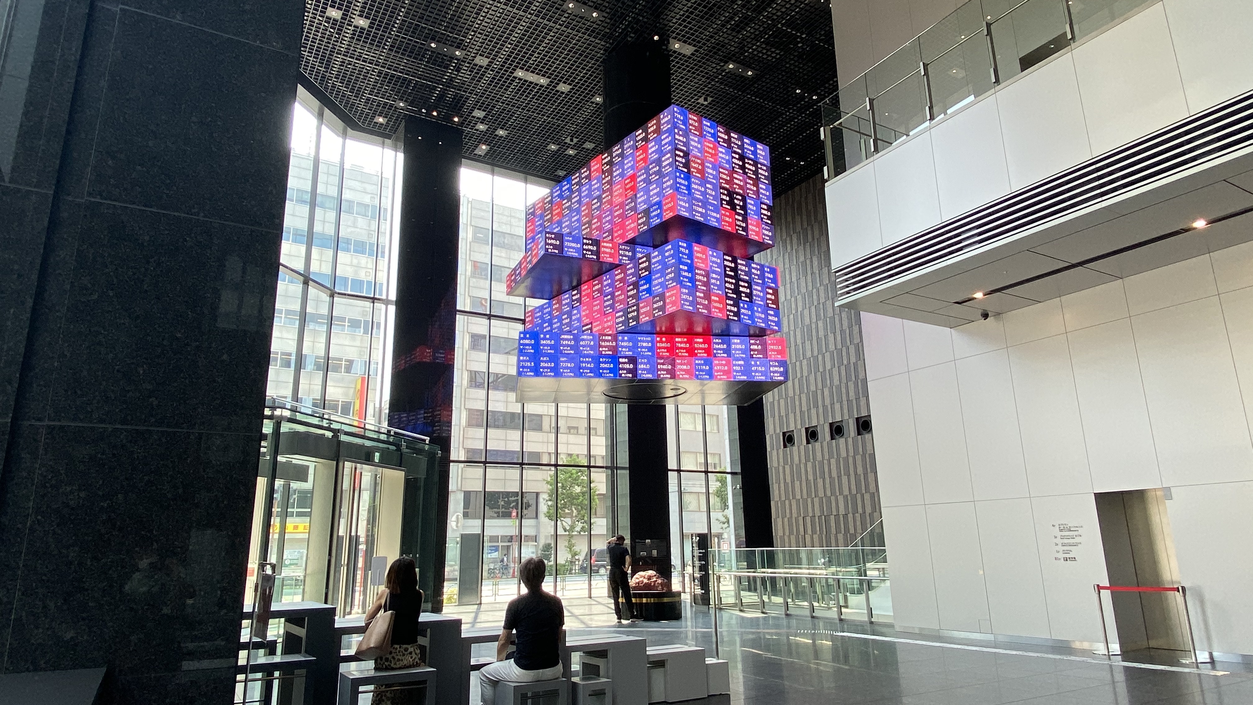 アイコニックなデザインのキューブ型LEDディスプレイ(幅6m、高さ5.5m、奥行き3m)、かつローテーションする分割されたLED機構は世界最大規模。さらに、株価データをリアルタイム処理し、心臓をイメージした抽象表現に落とし込んだデータビジュアライゼーション「The HEART」は、株や経済に詳しくない人も、日本経済の循環・脈動・熱量を直感的に感じることができるコンテンツとなっています。