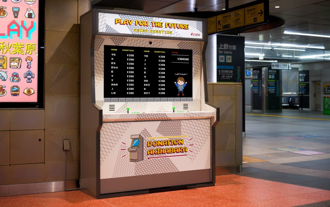 秋葉原のエキュート新規開店にあたり、プレイ金額が地域に寄付される常設型ゲームセンターを駅の商業施設内に設置。寄付総額や寄付者の名前がエキナカで表示される。