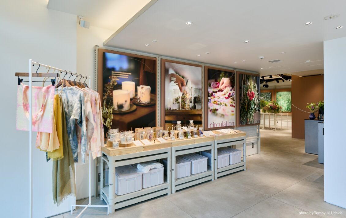 第一弾として高輪ゲートウェイシティに、地域と花の新しい循環をテーマとした店舗を展開。農薬や化学肥料を使わない「スローフラワー」や、役目を終えた花を再生利用した商品を販売。