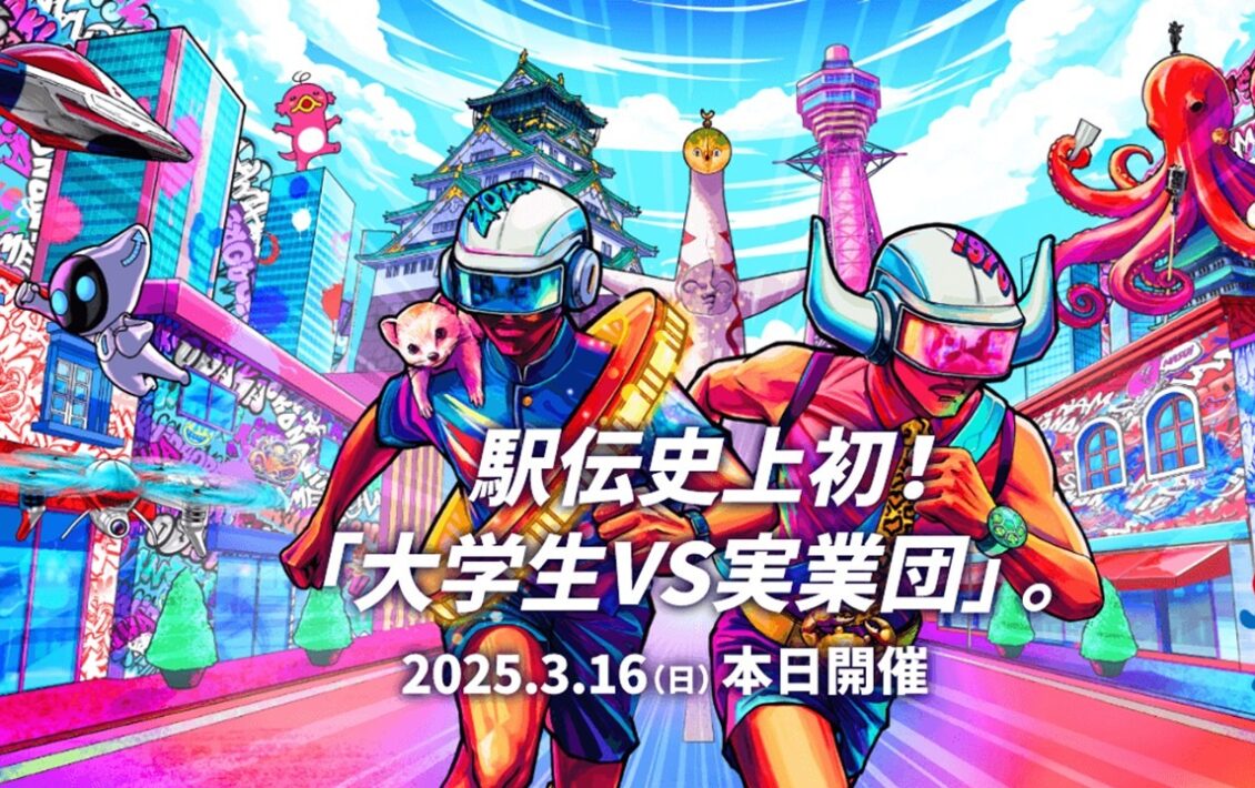 大阪・関西万博の気運醸成のため、大阪を舞台に、実業団と大学生のトップチームが対決する、男子駅伝史上初めての大会を実現。