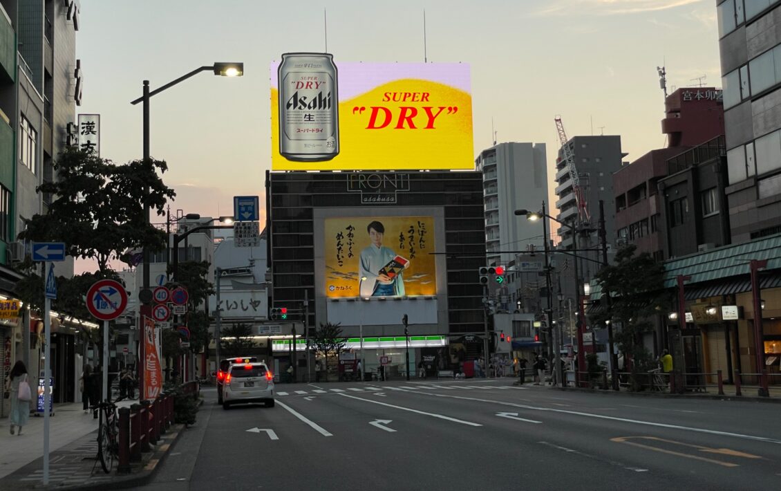 アサヒビール本社のお膝元、浅草に ある大型屋上広告塔の改修プロジェクト。